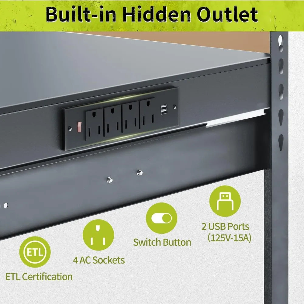 Steel Work Bench with Drawers, Pegboard, Light and Power Outlets